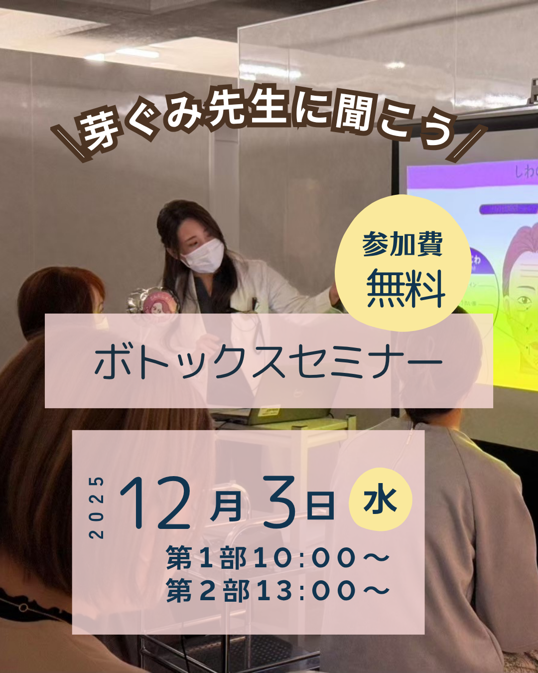 前回大好評だった「はじめてのボトックスセミナー」を、皆さまのご要望にお応えして 12月3日(水)に再開催 いたします💖…
