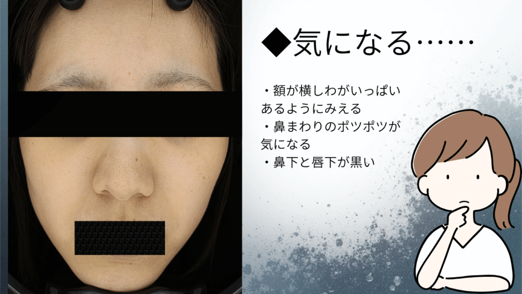 鼻がぶつぶつして見える、額がしわっぽくみえる……