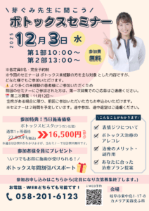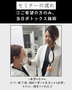前回大好評だった「はじめてのボトックスセミナー」を、皆さまのご要望にお応えして 12月3日(水)に再開催 いたします💖