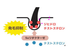 毛乳頭細胞や毛母細胞に存在する【5αリダクターゼ(5α還元酵素)】大きく関わっています