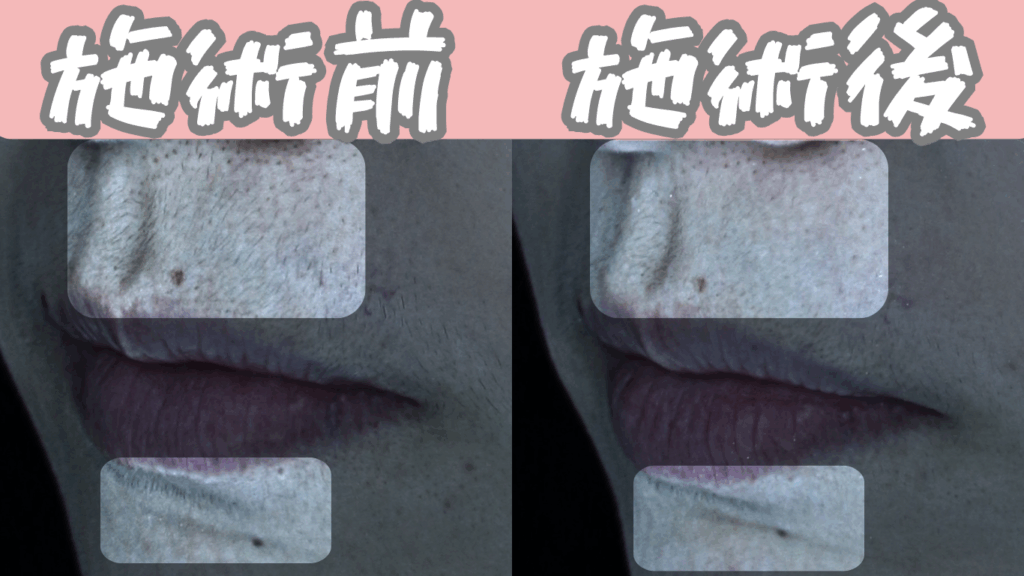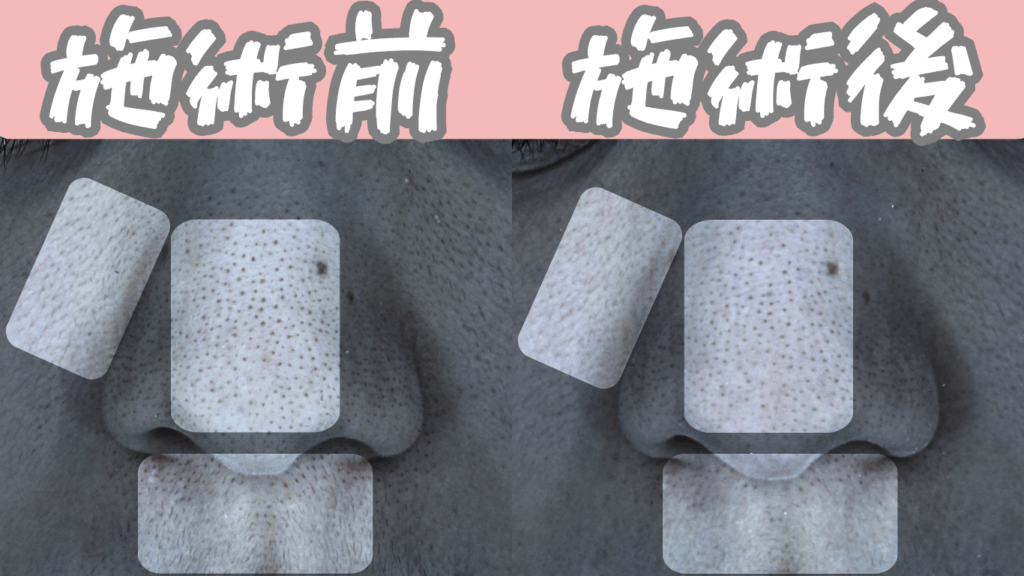 黒~茶色の丸っこい汚毛穴量の減少は明らかです。
